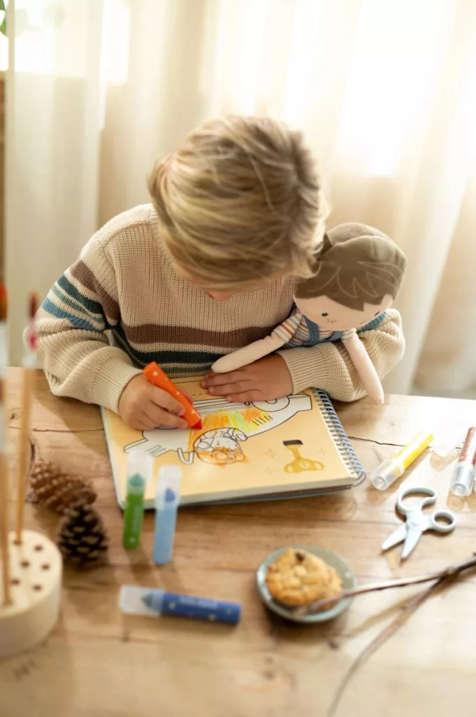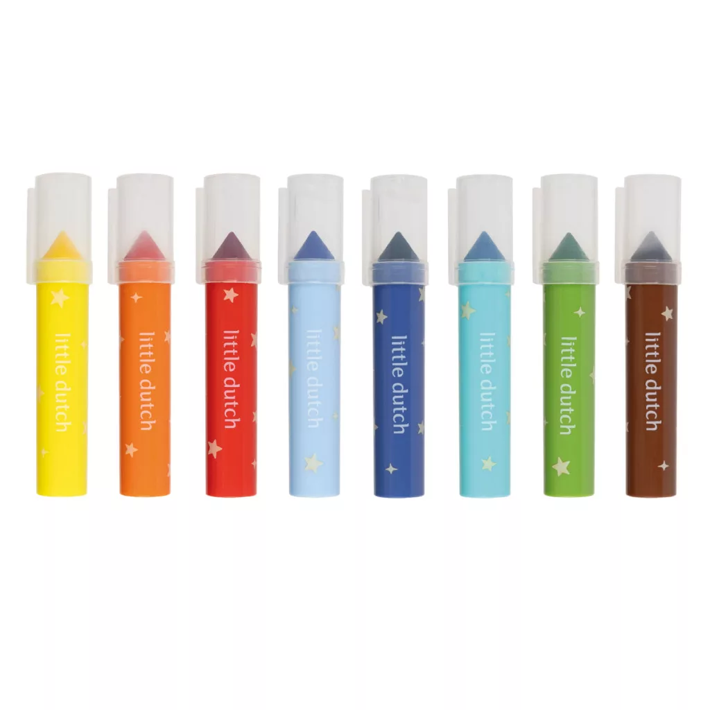 Ez a készlet 8 rövid, vastag filctollat tartalmaz a márka egyedi Little Dutch árnyalataiban. Ergonomikus formájuknak köszönhetően tökéletesen illeszkednek a kisgyermekek kezébe, így ideálisak az első rajzolási élményekhez.
