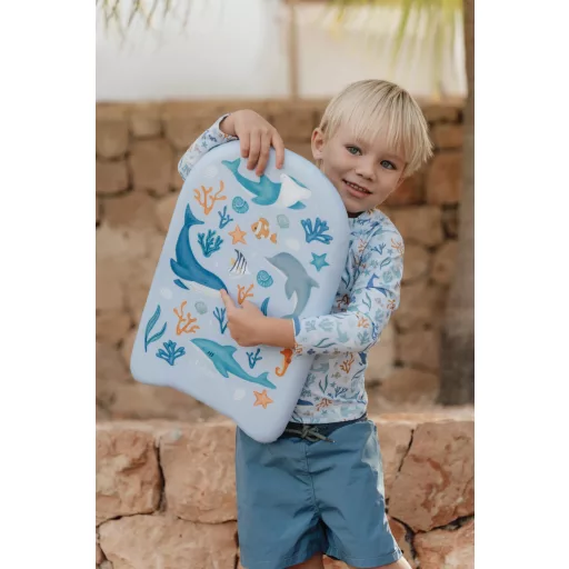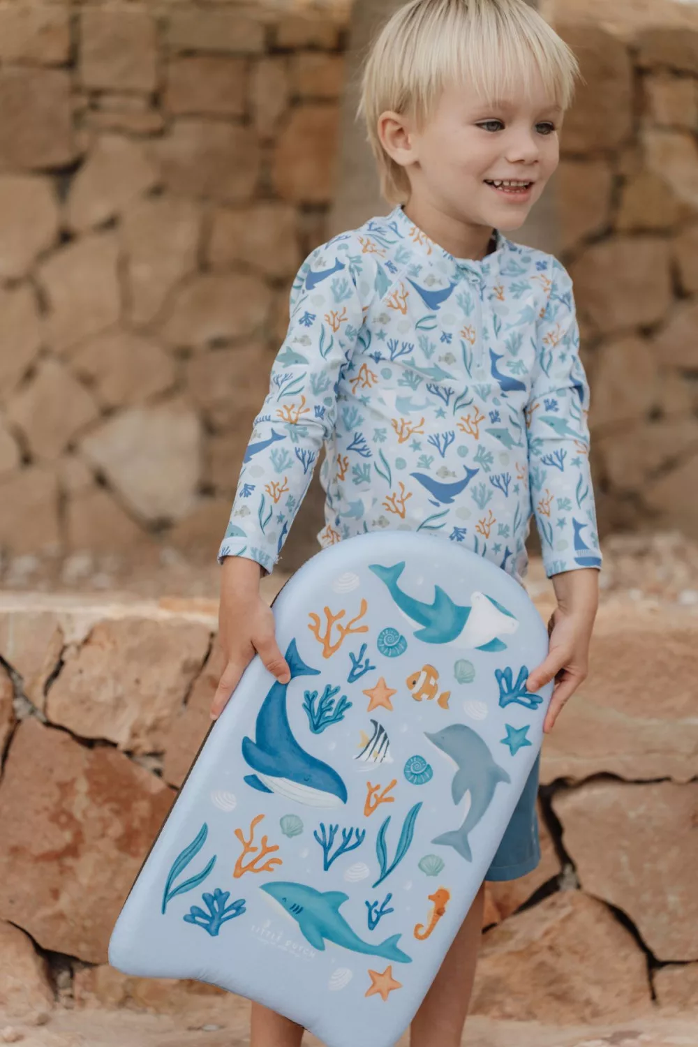 Az úszódeszka a Little Dutch Ocean Dreams Kék kollekció vidám mintájával díszített.