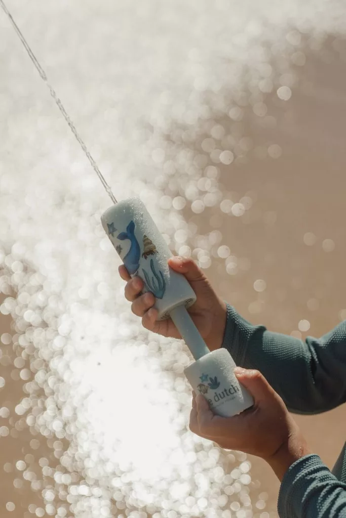Készen állsz egy nagy vizes csatára? A Little Dutch Dreamy Mermaid habszivacs vízipisztollyal rengeteg pancsolós móka vár rád! Töltsd meg vízzel, húzd hátra, és spricceld akár messzire is a vizet – akár 7 méterre! A vidám sellős minták igazi nyári hangulatot varázsolnak minden játékhoz. Könnyű, puha anyagból készült, így tökéletes a kis kezeknek és a sok-sok nevetéshez!