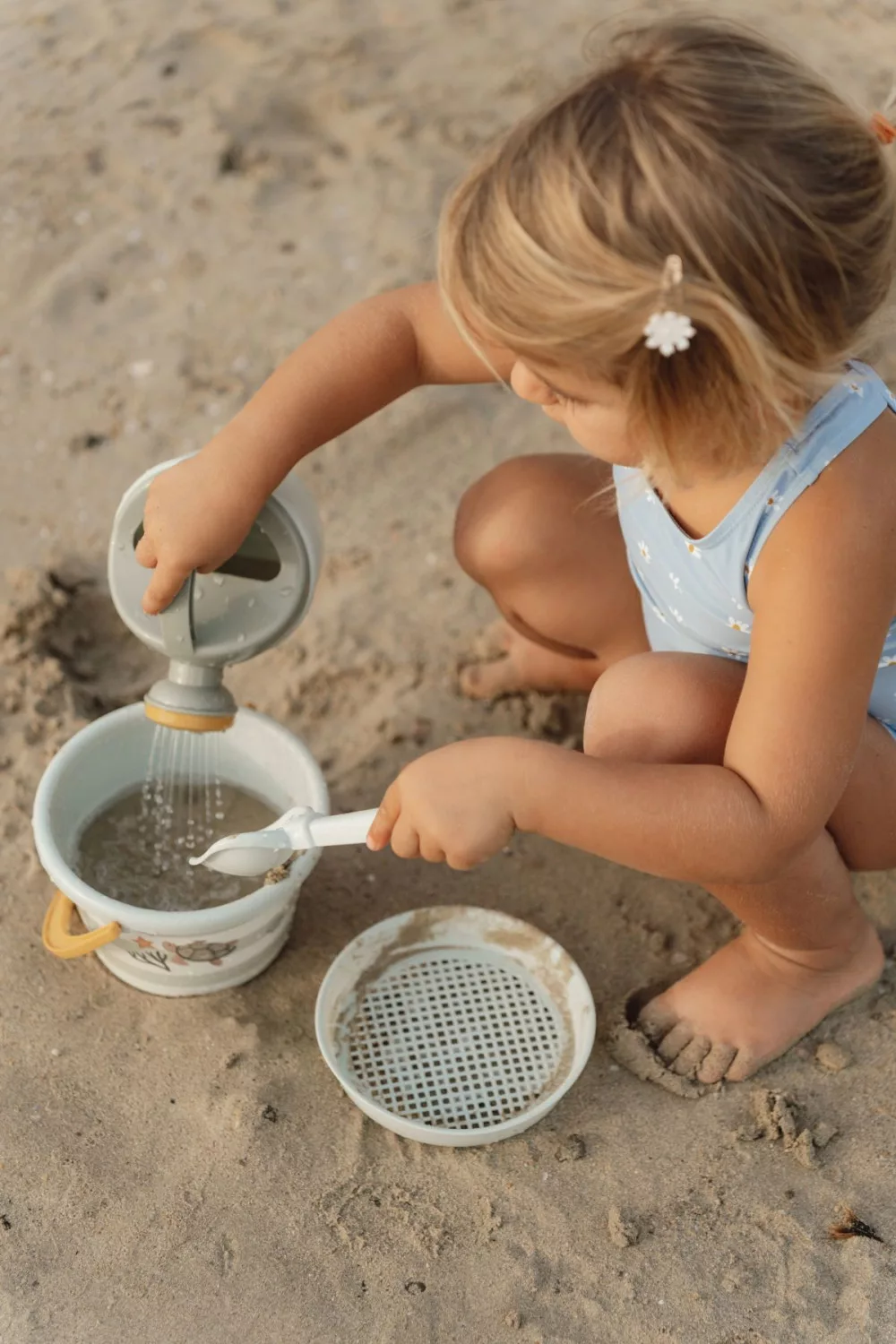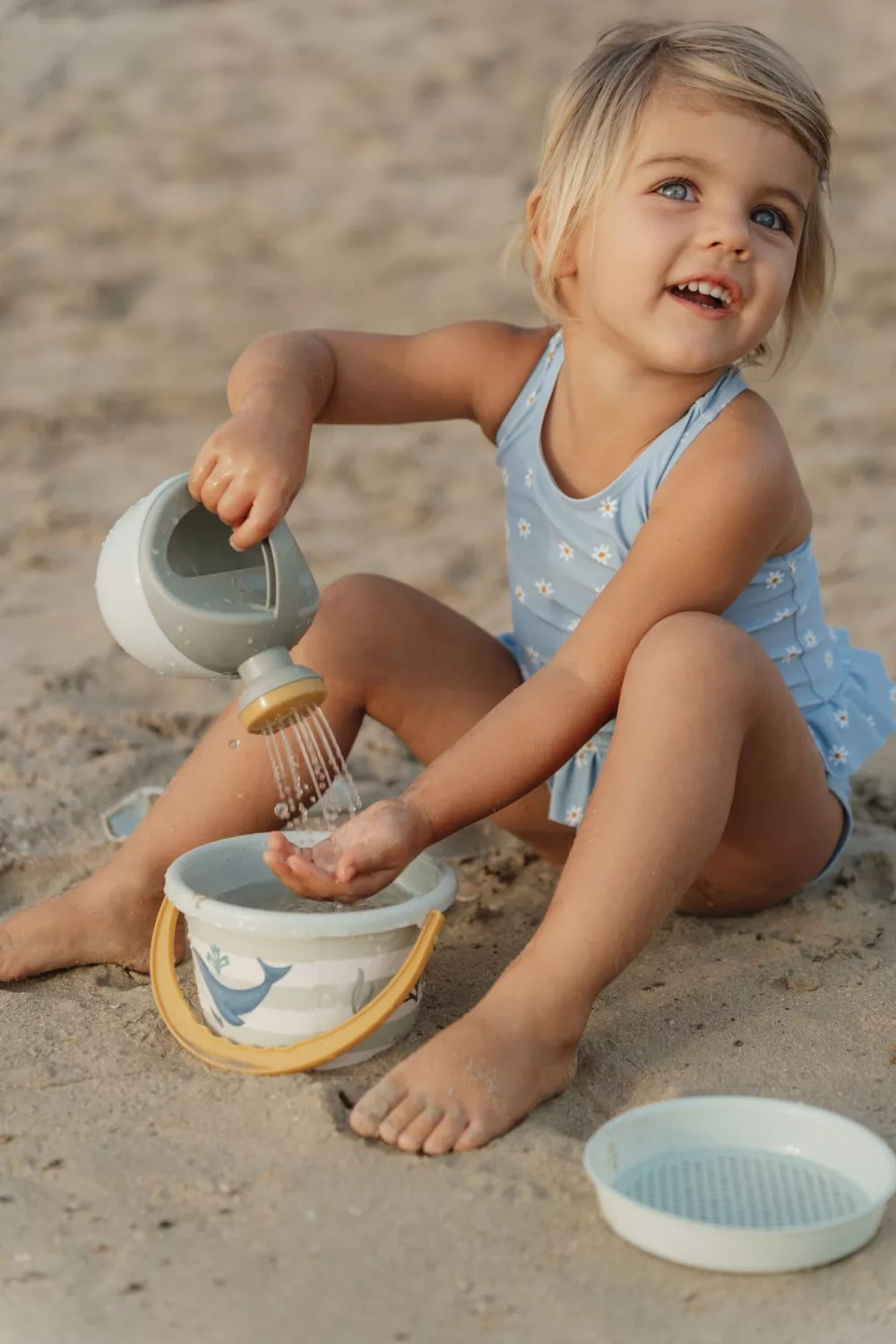 Mutasd csak, milyen szép lesz a homokvárad! A vár körül egy vizesárok készül? Hozz egy kis vizet az öntörőkannával, és már gyűlhet is a víz az árokban.