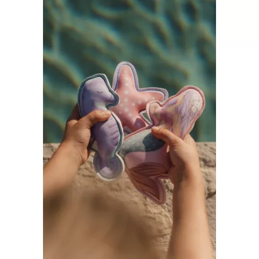 Merülj alá, és találd meg a kincseket! A Little Dutch Dreamy Mermaid merülőfigurákkal szuper vízi kalandok várnak rád. A színes figurák segítenek abban, hogy játék közben egyre ügyesebb legyél a vízben. A készletben egy tengeri csikó, egy sellő és egy csillaghal is található. A puha neoprén figurákat könnyű megfogni, és a praktikus tárolózsákban bárhová magaddal viheted őket.