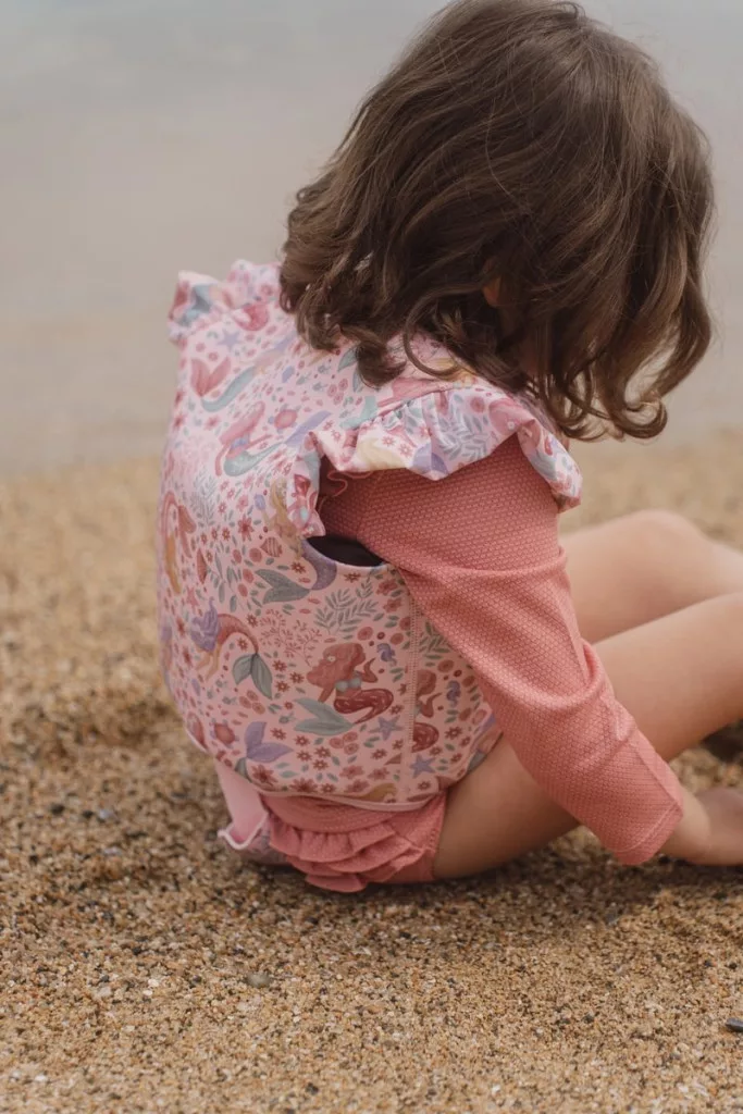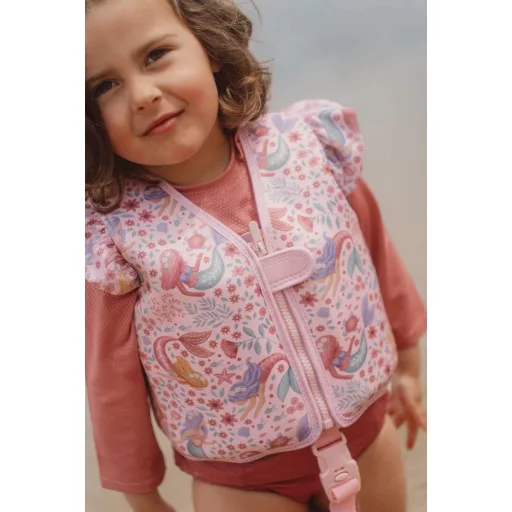 Ugorj a vízbe, és ússz sellő módra! A Little Dutch Dreamy Mermaid úszómellénnyel még nagyobb élmény a pancsolás. A kényelmes, ujjatlan fazon és a V-nyak szabad mozgást biztosít, így könnyedén úszhatsz és játszhatsz a vízben. A szép rózsaszín szín, a virágos és sellős minták igazi nyári hangulatot varázsolnak a strandon vagy a medencében. A mellény segít fennmaradni a vízen, a cipzár és a tépőzár pedig gyors fel- és levételt tesz lehetővé.