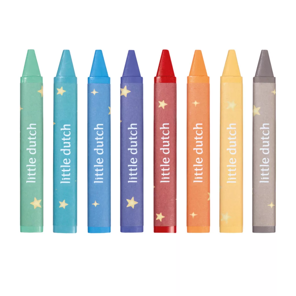 Ez a gyönyörű Little Dutch készlet 8 darab viaszkrétát tartalmaz a Little Dutch márka jellegzetes fiús színeiben.
