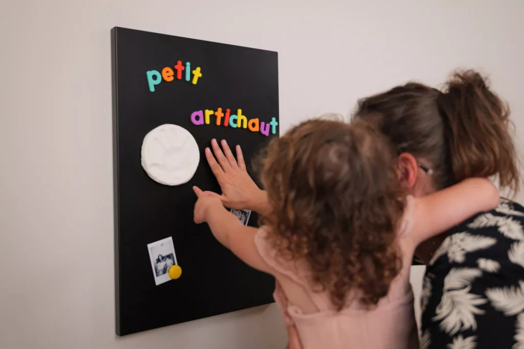 Ez a mágneses emléktárgy lehetővé teszi, hogy kicsi lenyomatokat készítsen a baba kezéről vagy lábáról, amelyeket a mágneses hátlap miatt bármilyen fémfelületen megjeleníthet. Ideális ajándéknak vagy mindennapi emlékeztetőként családja szeretetére.