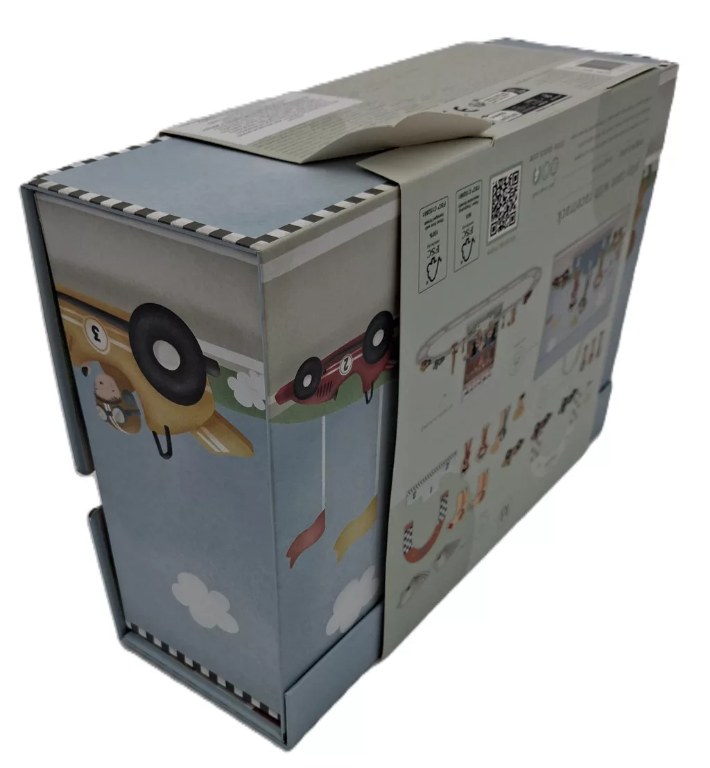 Ez a karton játékbőrönd egy pillanat alatt izgalmas versenypályává alakul át.