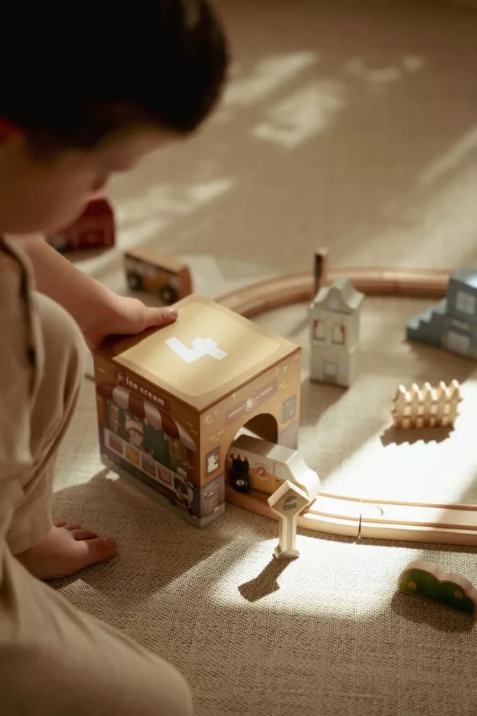 A dobozokat egymásra lehet tornyozni, vagy elhelyezni a Little Dutch XL vasútpálya fölé, így a kis járművek könnyedén áthaladhatnak alattuk.