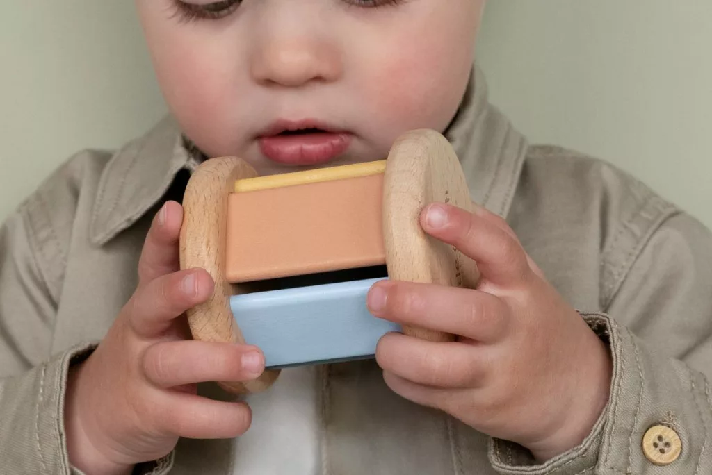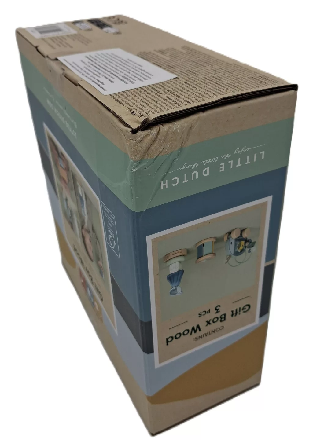 Elragadó Little Dutch ajándékdoboz, mely három különböző fa készségfejlesztő játékot tartalmaz.