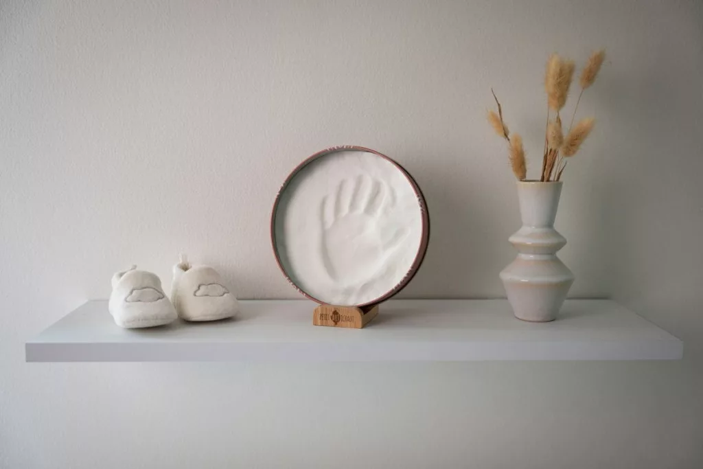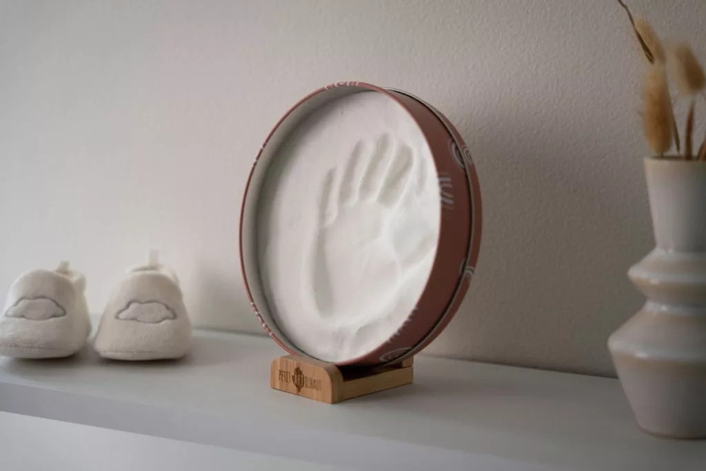 Ez a kör alakú fémdoboz lehetővé teszi, hogy kéz- vagy lábnyomokat készítsen, hogy megörökítse ezeket az egyedi pillanatokat. Harmonikusan illeszkedik a gyermekszoba vagy a ház bármely helyiségének dekorációjához.
