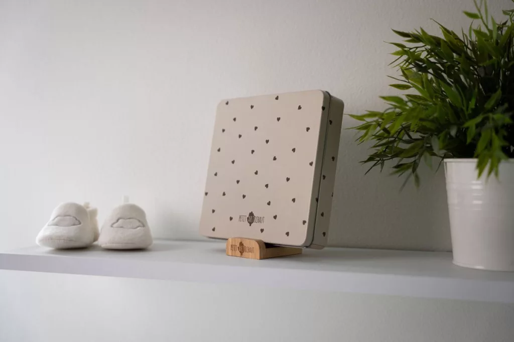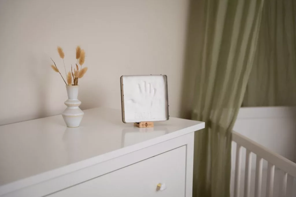 Ez a négyzet alakú fémdoboz lehetővé teszi, hogy kéz- vagy lábnyomokat készítsen, hogy megörökítse ezeket az egyedi pillanatokat. Harmonikusan illeszkedik a gyermekszoba vagy a ház bármely helyiségének dekorációjához.