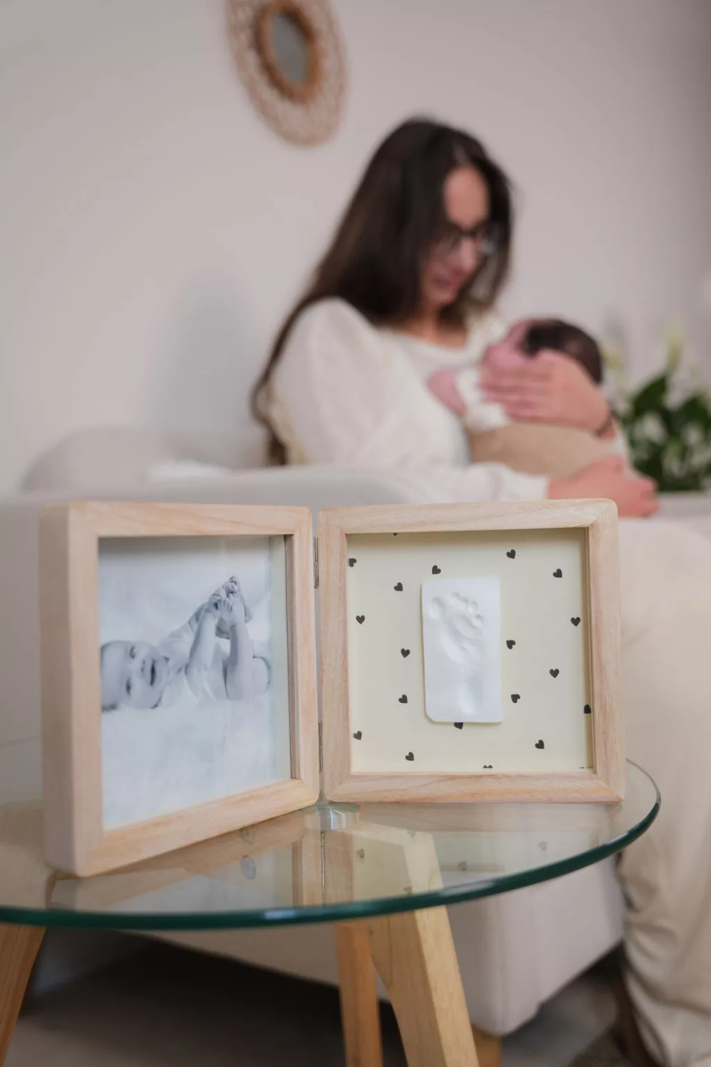 Ez a 2 paneles állókeret egyik oldalán fényképet, másik oldalán lenyomatot kombinál.